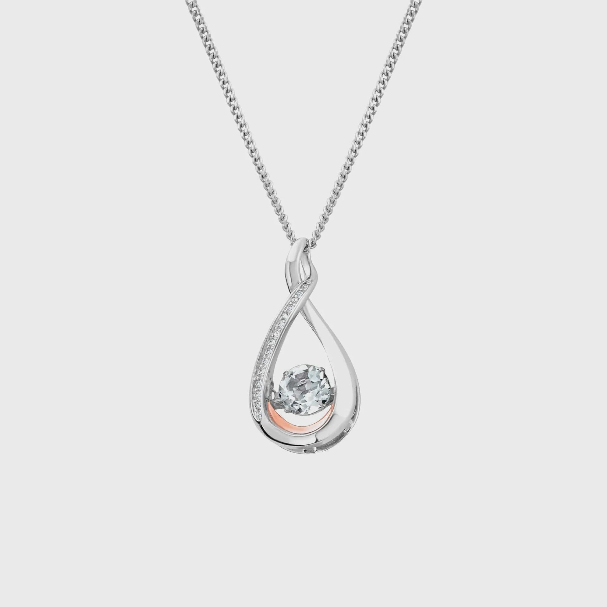 True love is a flame that burns eternally. Inspired by everlasting romance, our Eternity Silver Pendant features genuine round faceted white topaz gemstones within a classic teardrop-shaped setting. Created in elegant sterling silver and embellished with warm 9ct rose gold, it’s a beautiful item that will stand the test of time.
