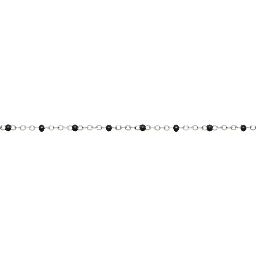 925 Sterling Silver 1.7mm Flat Cable Chain With Black Epoxy Beads 21cm for Bracelet