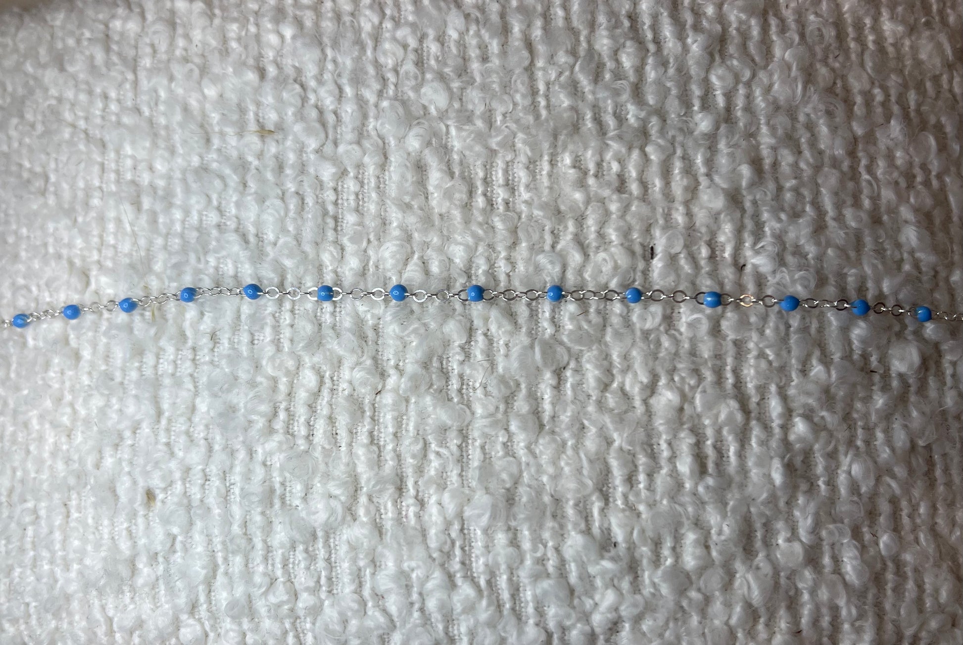 925 Sterling Silver 1.7mm Flat Cable Chain With Blue Beads Bracelet