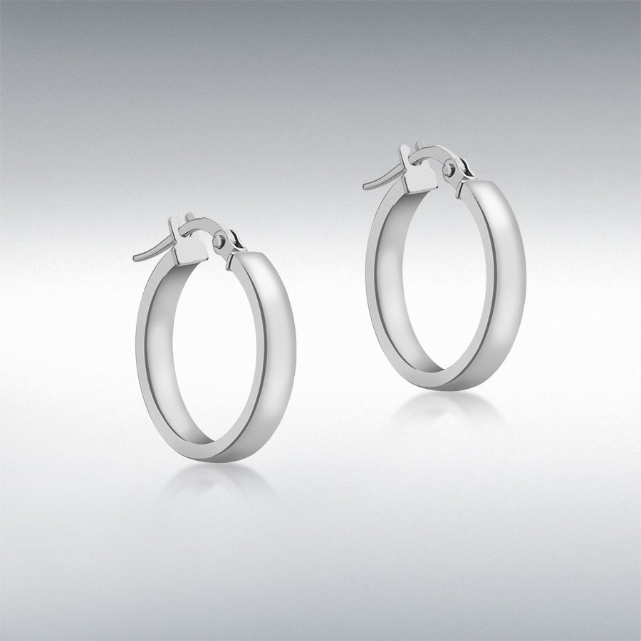 9ct White Gold 3mm Rectangular-Tube 15mm Hoop Creole Earrings