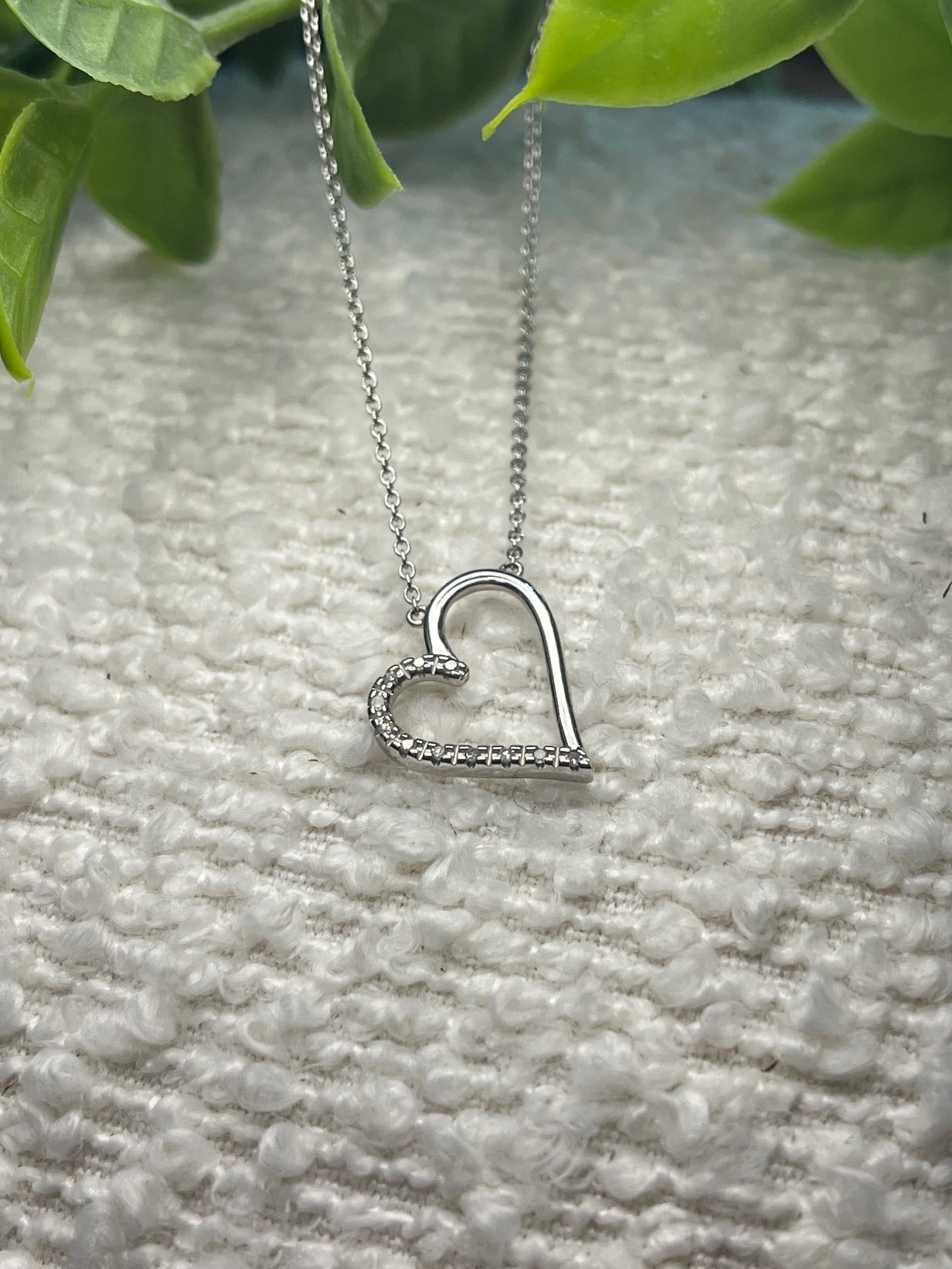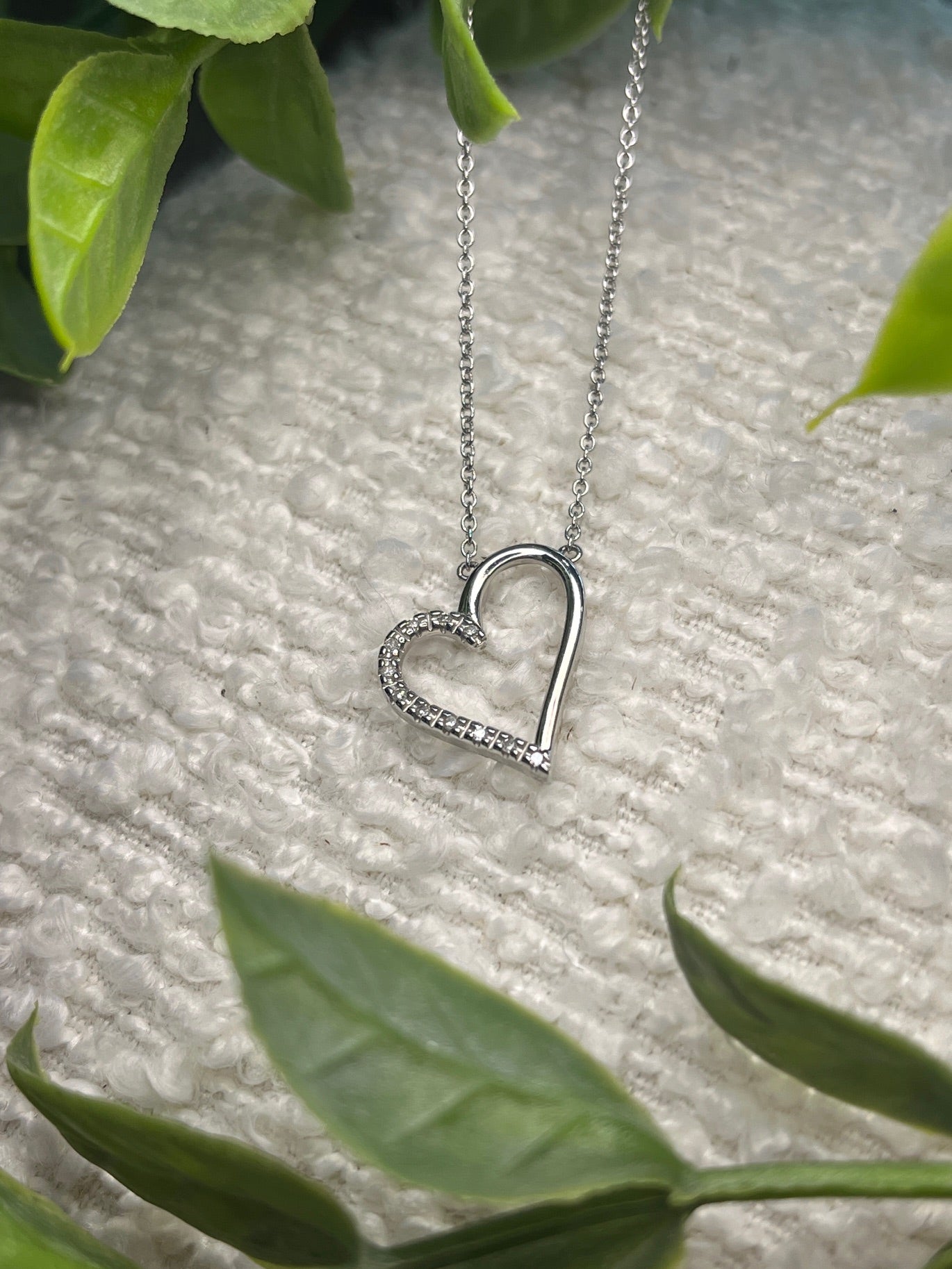 Indulge in this beautiful cut out diamond heart necklace in 9ct white gold, also making the most heartfelt gift.