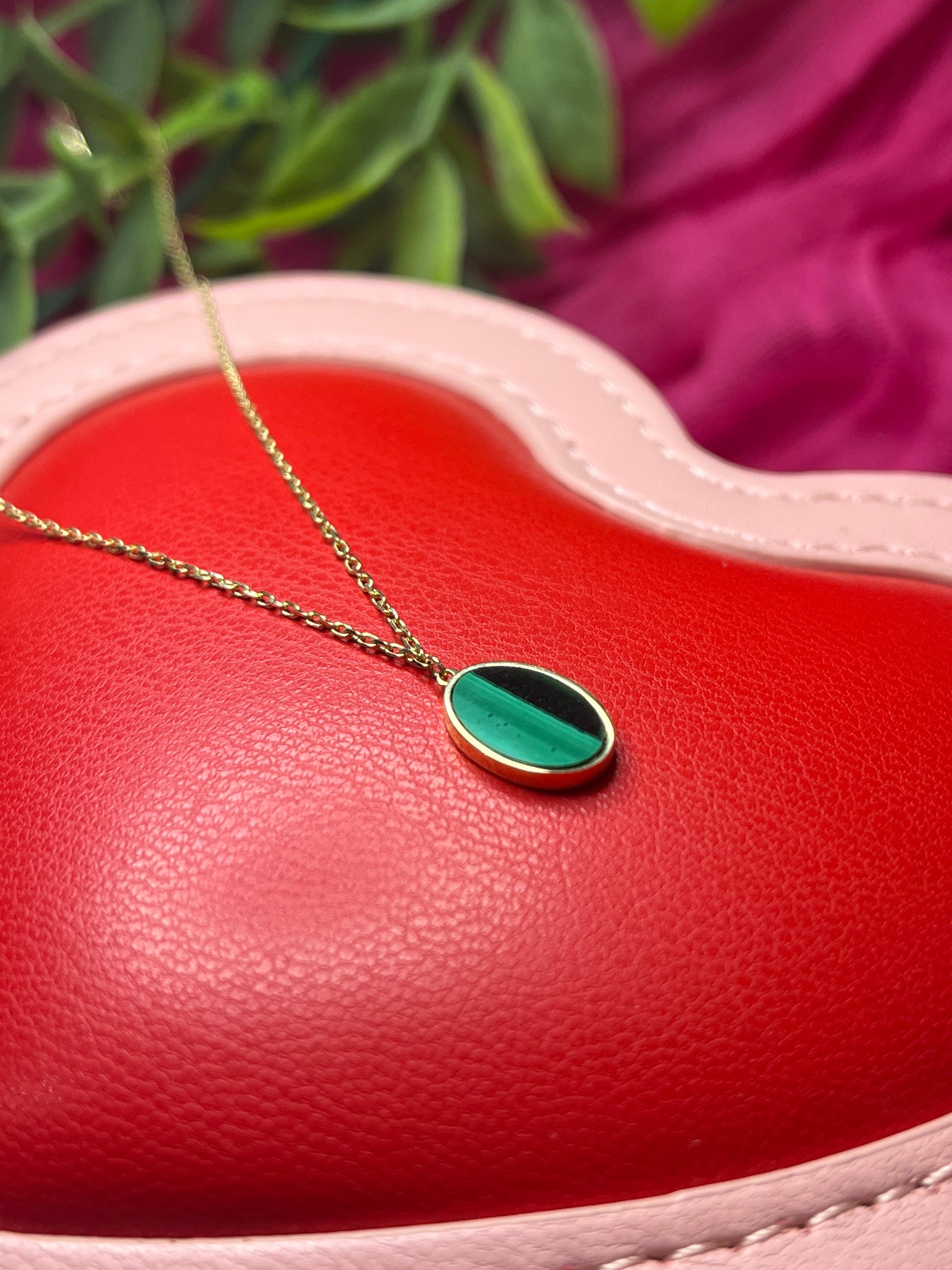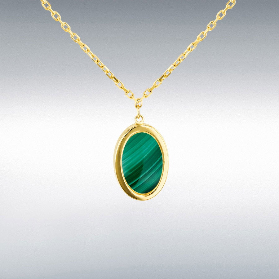 9ct Yellow Gold 11.5mm x 7.7mm Oval Malachite Adjustable Necklace 41cm/16" - 46cm/18"