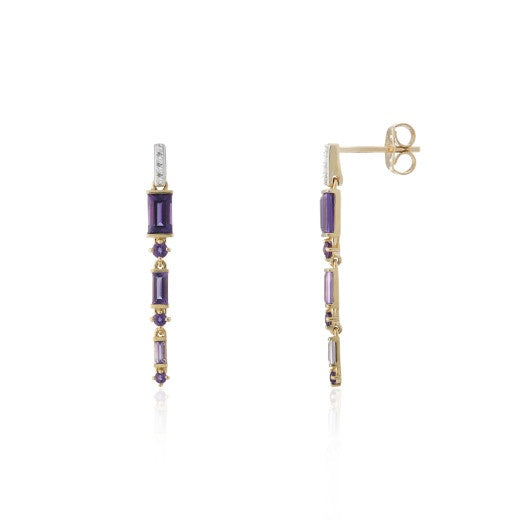 9ct Yellow Gold Diamond & Amethyst Drop Earrings