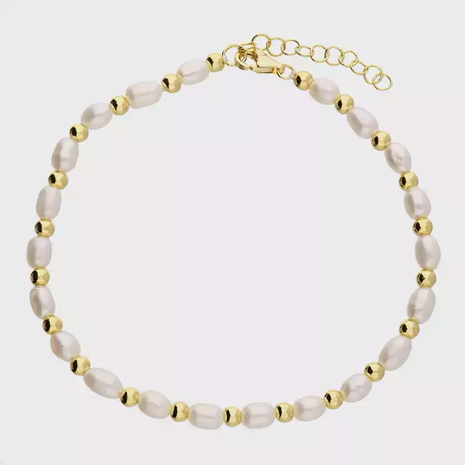 Alternate bead and oval freshwater pearl bracelet with 17+2.5cm extender