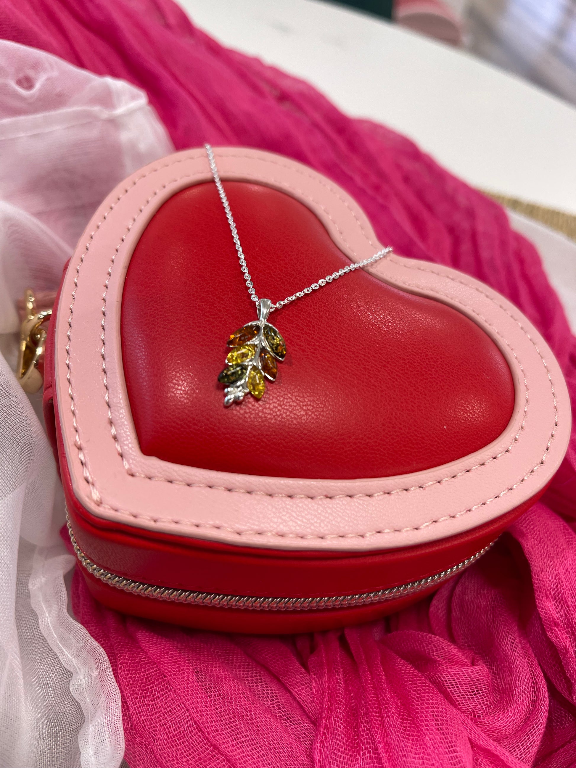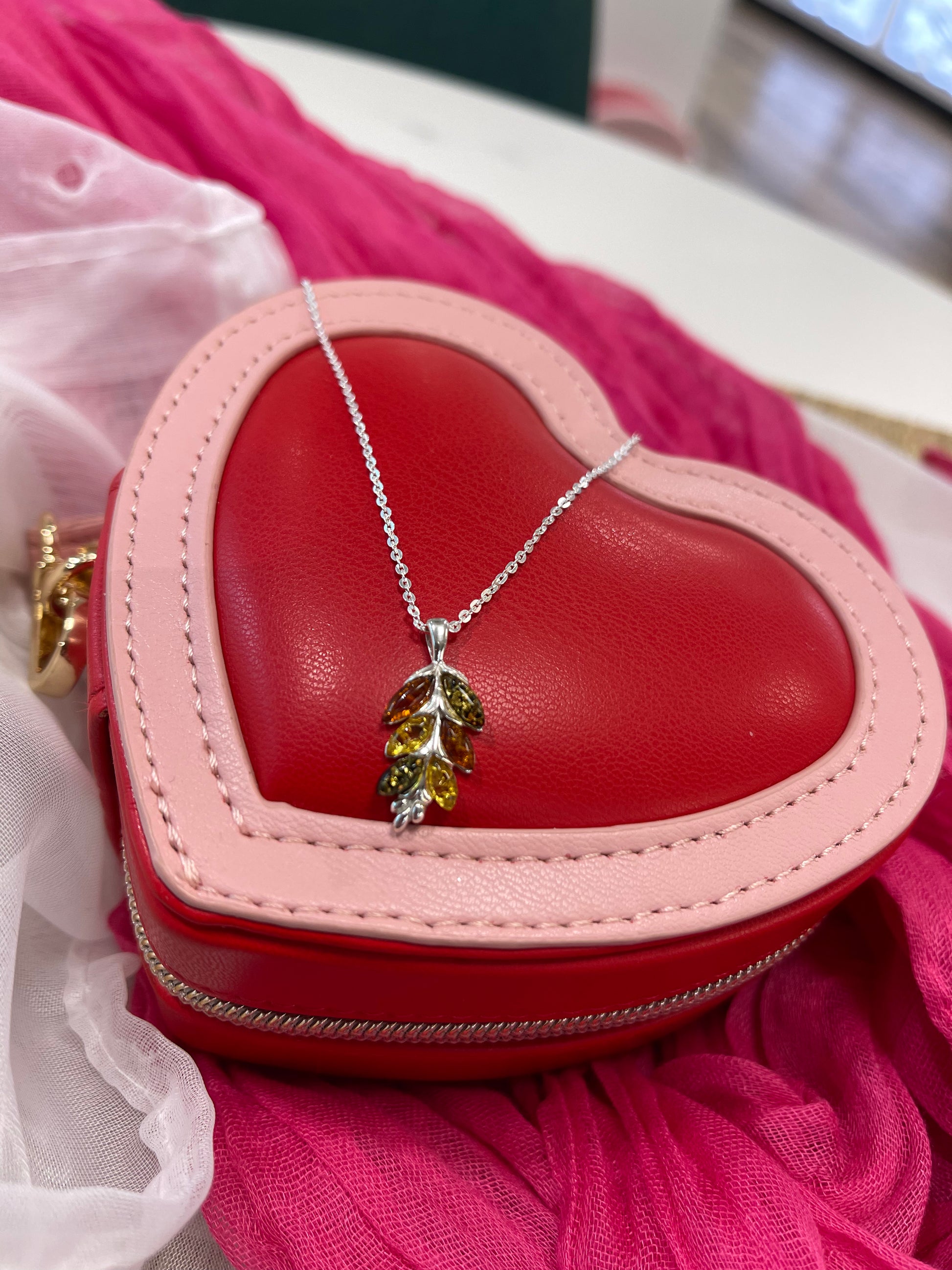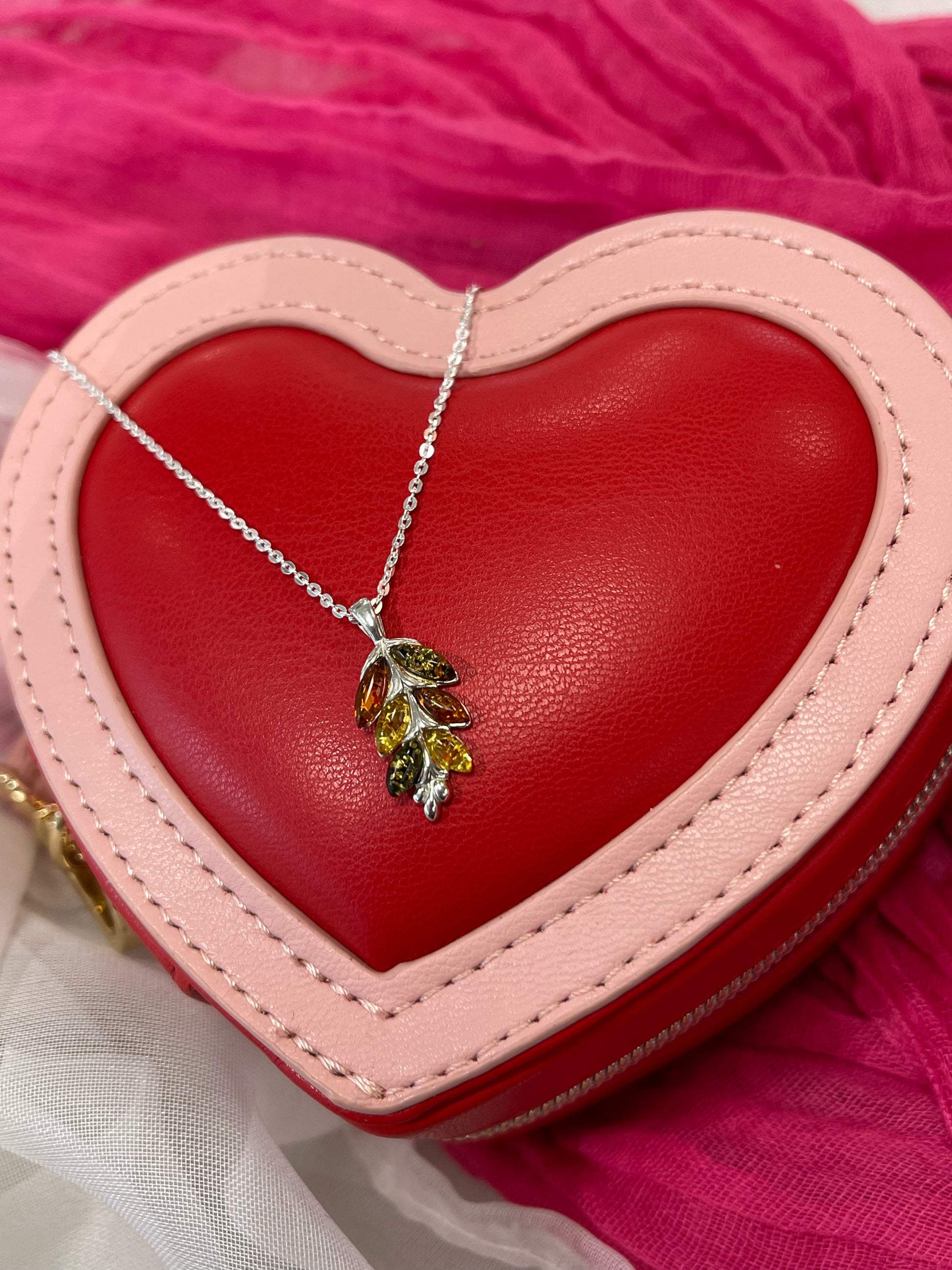Amber Leaf Necklace On Diamond Cut Trace Chain