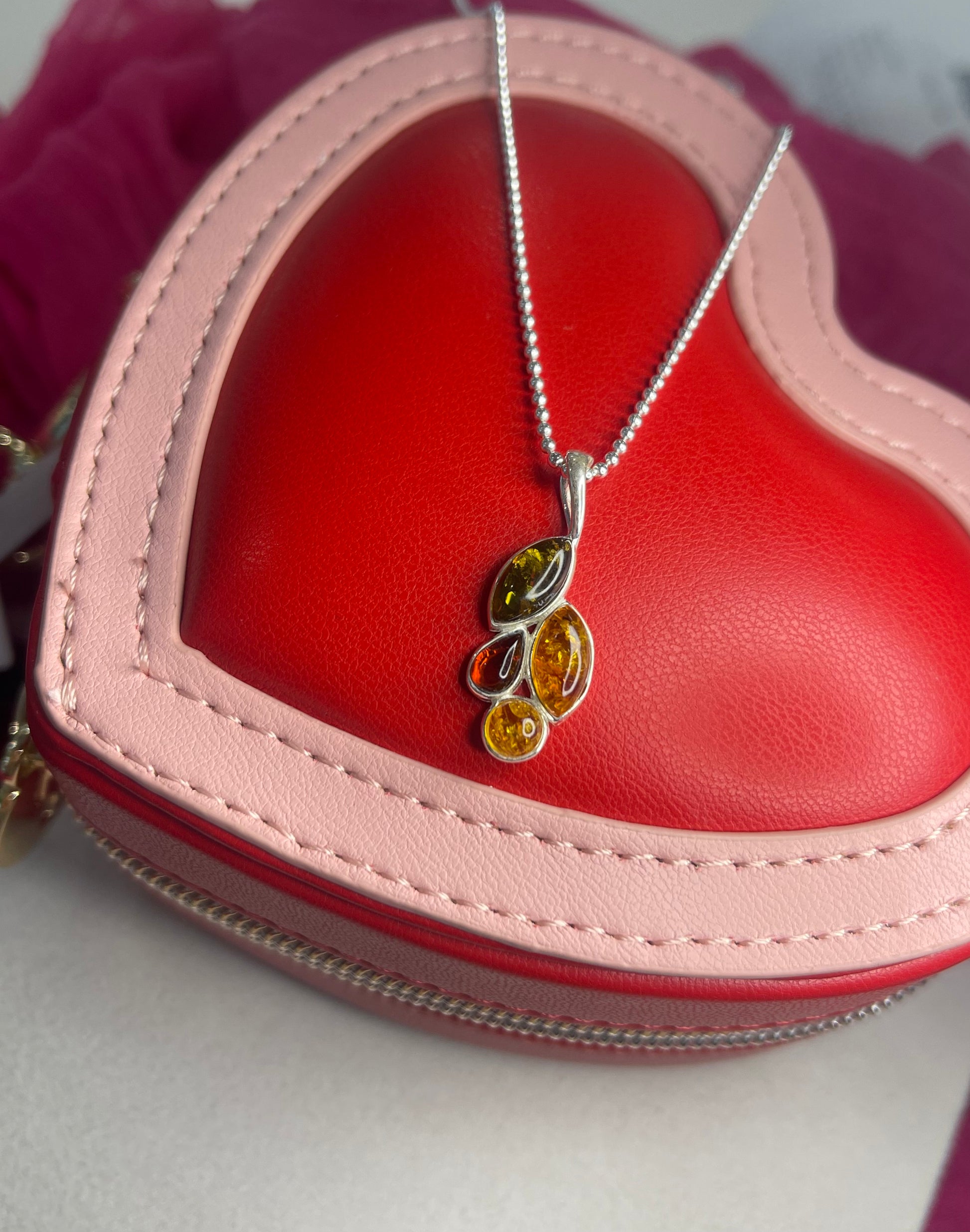 Amber Leaf Pendant With Ball Chain