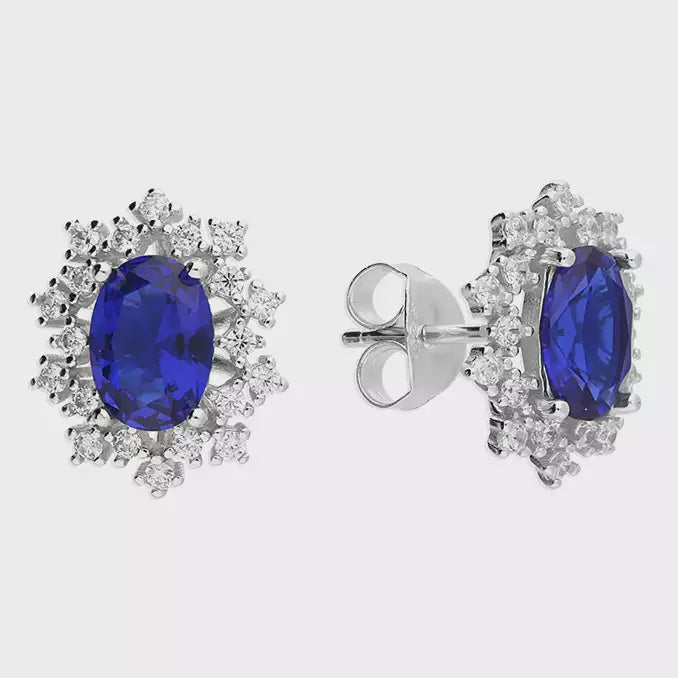 Antique effect white cubic zirconia surround with nano blue centre stud