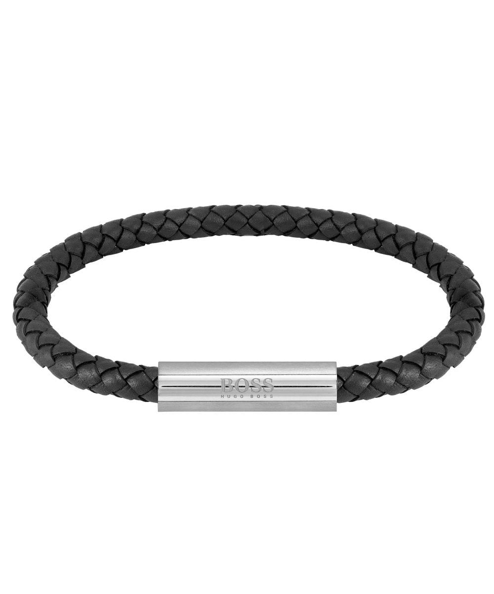 BLACK BRAIDED LEATHER BRACELETWITH SS MAGNETIC CLOSURE
