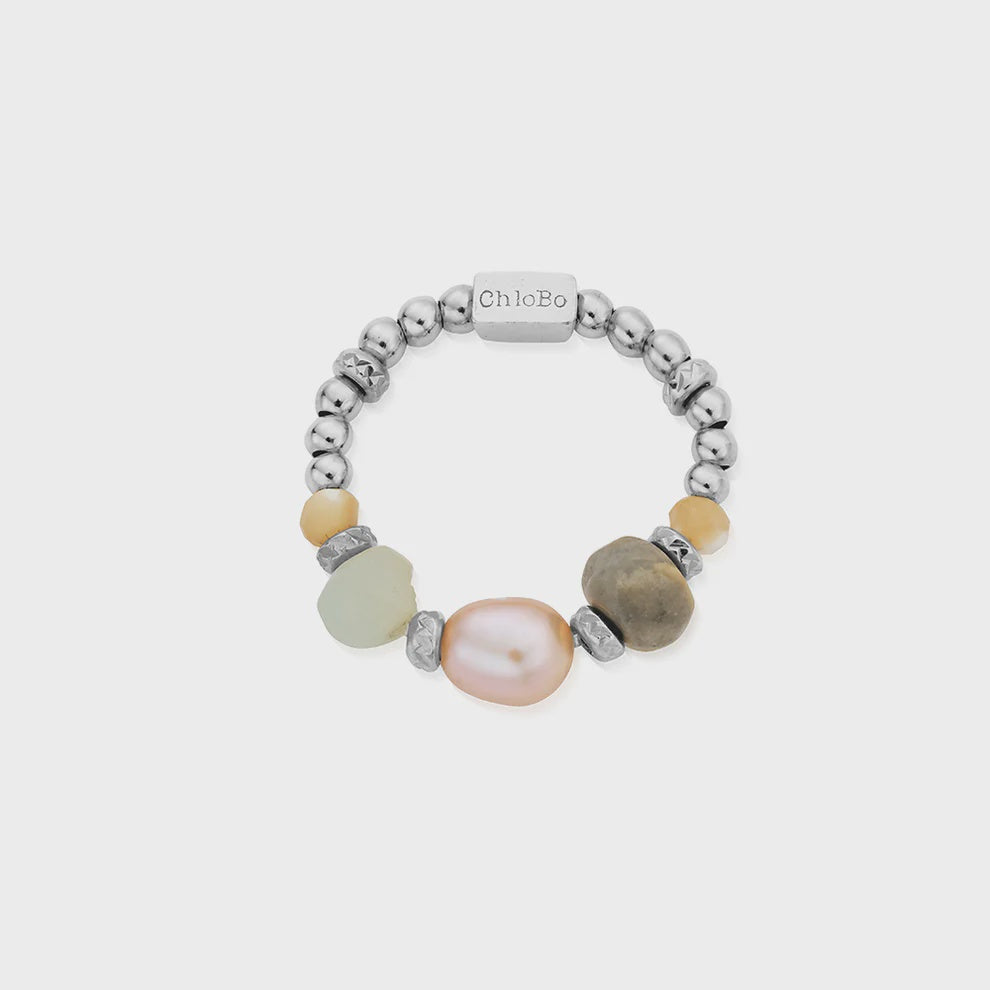 Dive into a sense of serenity with the Calming Waters Ring, featuring a harmonious blend of this collections four stones – shell, amazonite, pink pearl and mother of pearl – for a combination of calming energy, balance and luck. Capturing the tranquil beauty of Balinese shores, wear this ring as a reminder to embrace your inner peace and let the soothing powers of nature guide you.