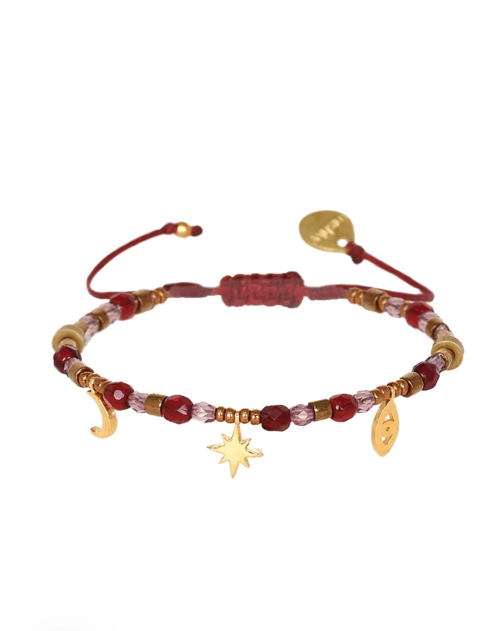 Round glass bead, polyester thread, italian thread, gold plated moon charm, gold plated star charm, gold plated lighthing charm, Mishky bronze gold plated logo