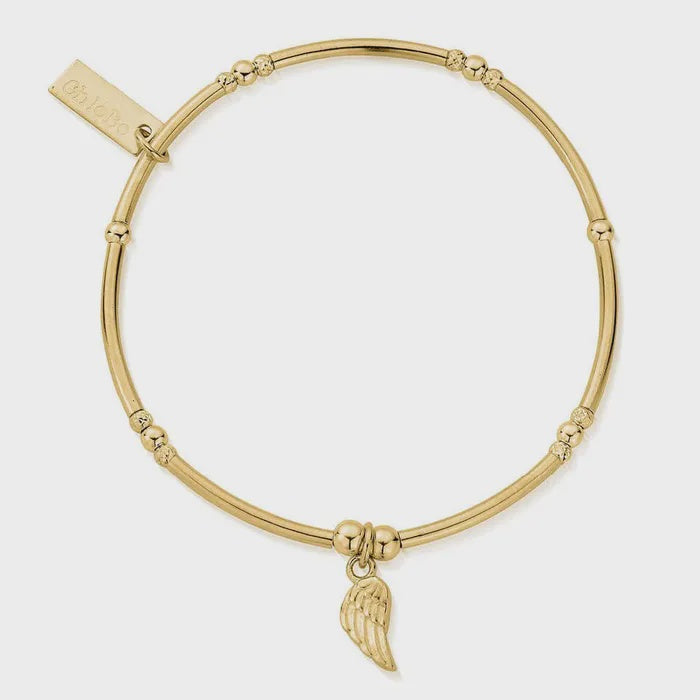 A reminder of your guardian angel. This iconic noodle ball style features an elegant angel wing charm, worn as a symbol of love, comfort and protection as you're reminded that your guardian angel is always with you.