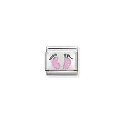 Composable CL OXIDIZED PLATES in steel, enamel and 925 silver (14_Pink Footprints)