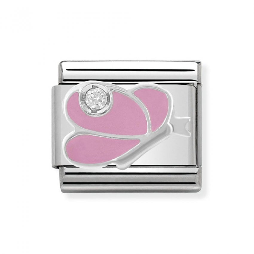 Composable CL SIMBOLS stainless steel, enamel, 1 Cub, Zirc and 925 silver (07_PINK butterfly)