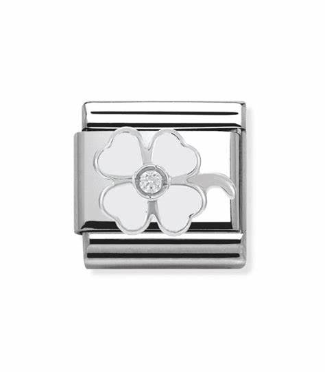 Composable CL SIMBOLS stainless steel, enamel, 1 Cub, Zirc and 925 silver (14_WHITE clover)