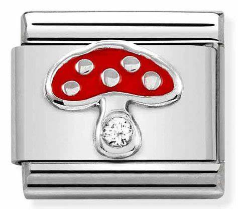Composable CL SIMBOLS stainless steel, enamel, 1 Cub, Zirc and 925 silver (18_Mushroom)