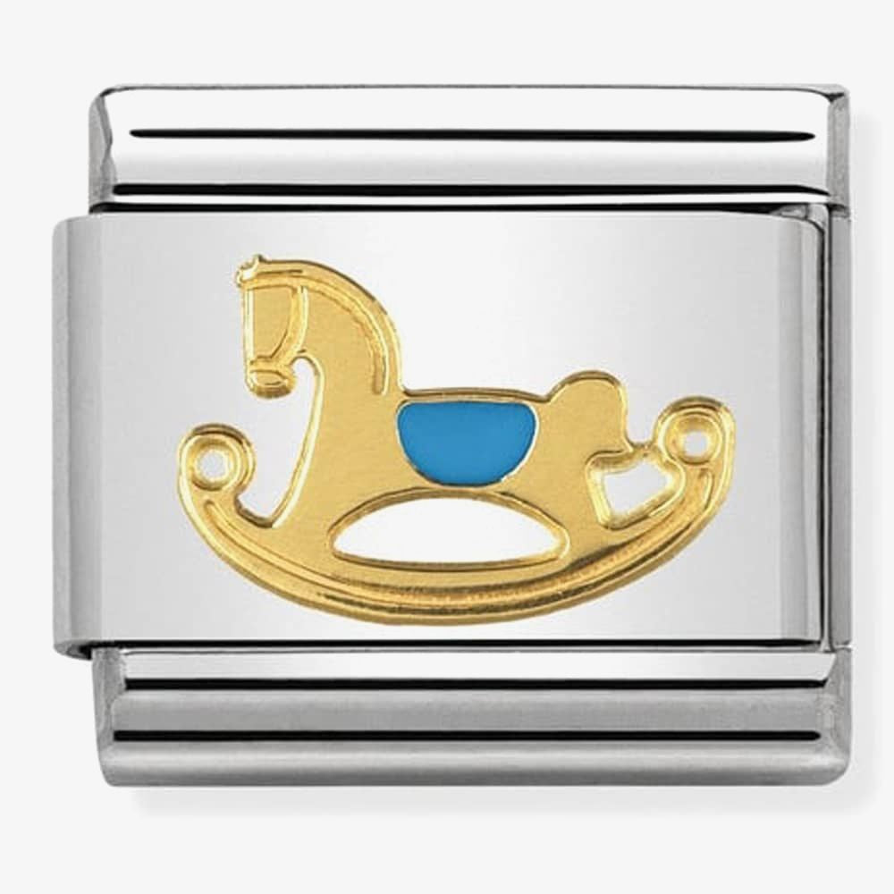 COMPOSABLE Classic 1 DAILY LIFE in stainless steel with enamel and bonded yellow gold (44_Light blue rocking horse)
