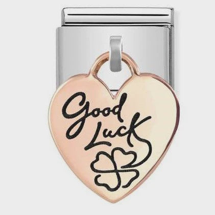 Composable Classic CHARMS ENGRAVED PLATES (IC) steel and bonded rose gold (07_Heart Good luck)