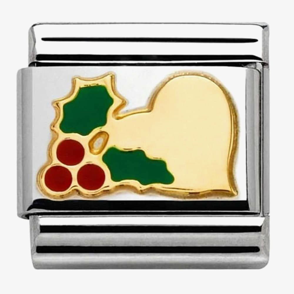 COMPOSABLE Classic CHRISTMAS in stainless steel with enamel and bonded yellow gold (23_Heart with holly)