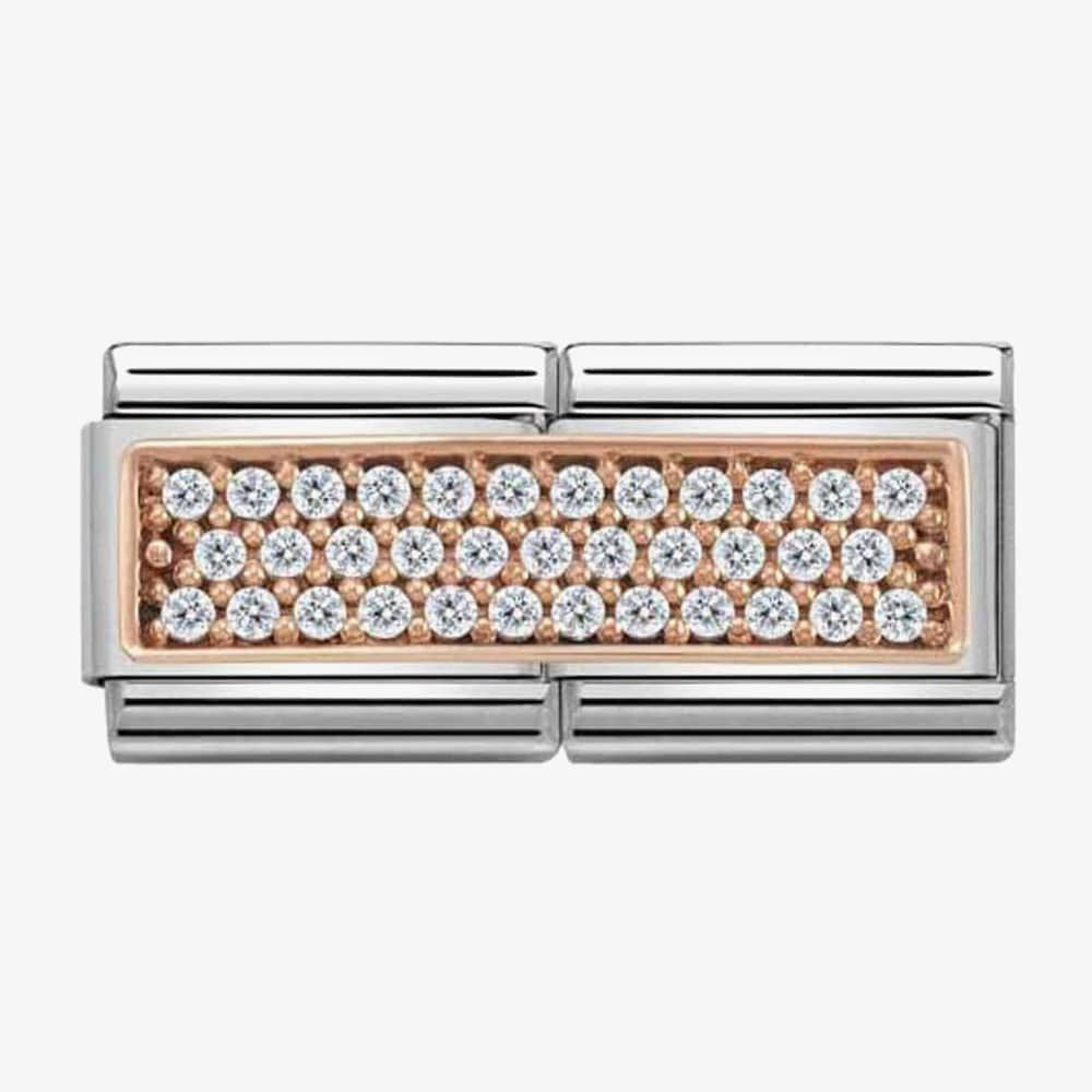 Composable Classic DOUBLE PAVE steel and 9k rose gold (01_White CZ)