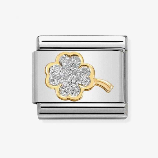 Composable Classic GLITTER SYMBOLS in steel, enamel and bonded yellow gold (03_SILVER four-leaf clover)