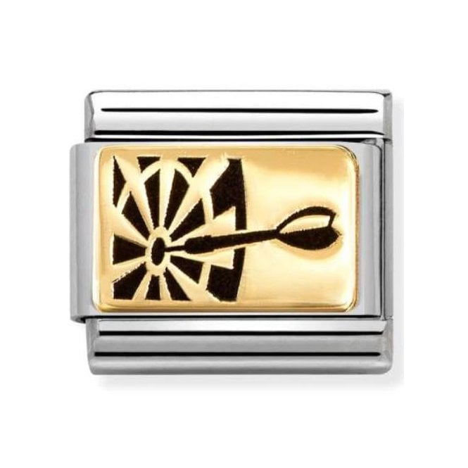 Original Nomination Composable Classic Link for Composable bracelet in stainless steel with bonded yellow gold plate with black engraving Darts symbol. This is the perfect Link to always hit your mark. These engraved darts will bring even more dynamic energy and movement to your Composable bracelet. This Link is a Must Have for anyone who wants jewellery that is on-trend and distinctive.