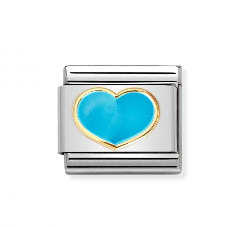 Composable Classic LOVE 2 stainless steel, enamel and bonded yellow gold (25_TURQUOISE heart)