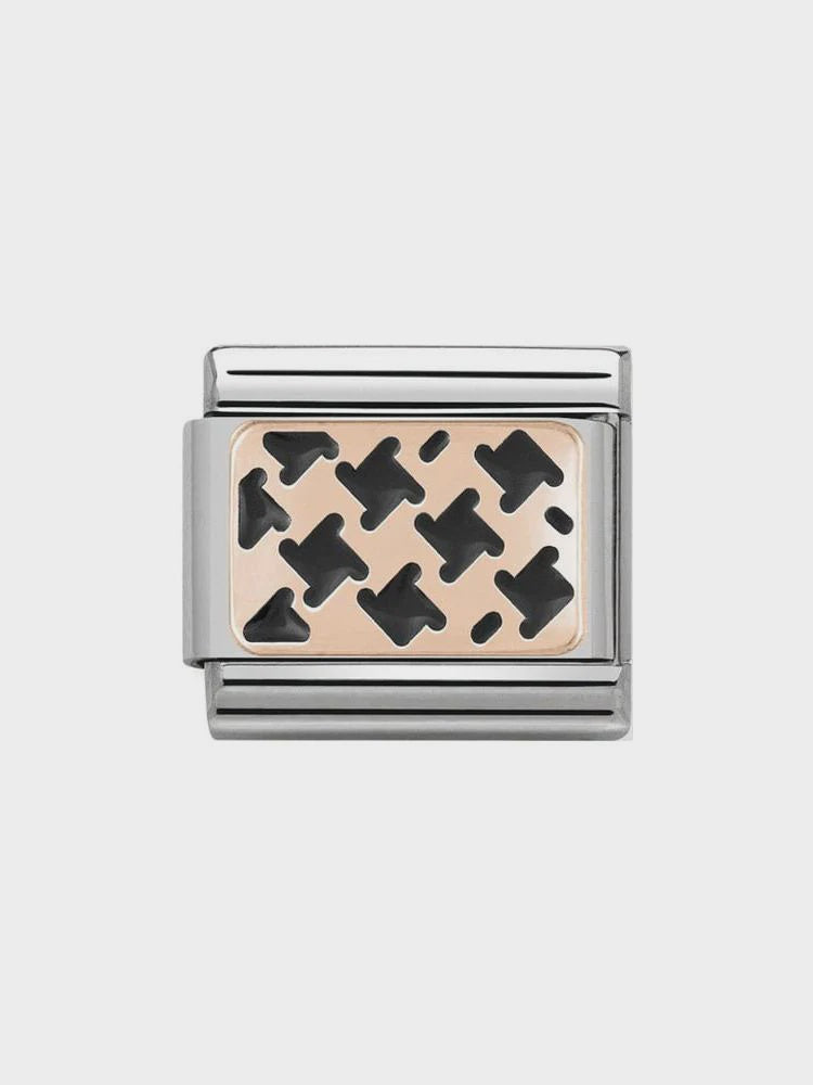 Composable Classic PLATES in stainless steel with 9k rose gold and enamel (01_Houndstooth Black)