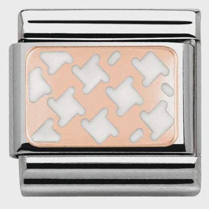 Composable Classic PLATES in stainless steel with 9k rose gold and enamel (04_Houndstooth White)
