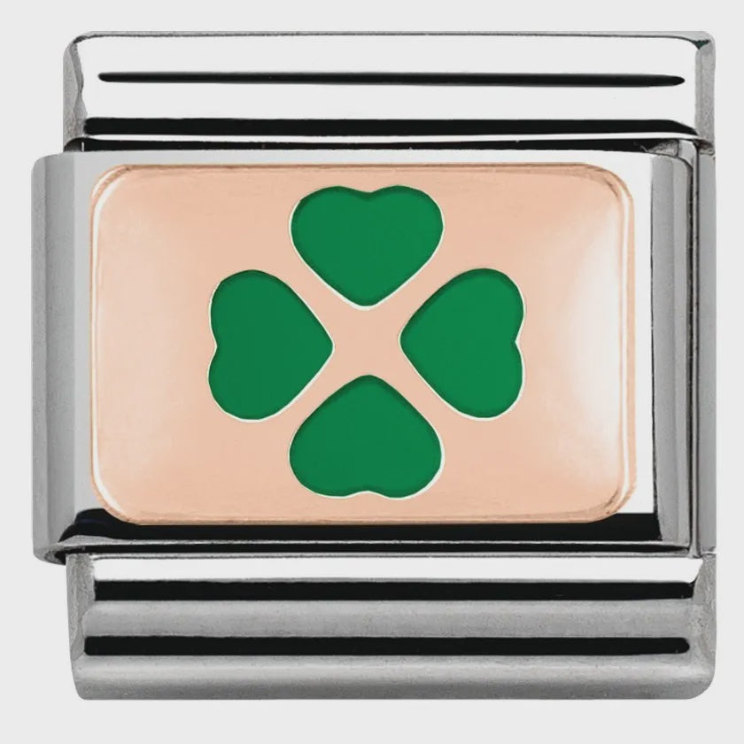 Composable Classic PLATES in stainless steel with 9k rose gold and enamel (08_Green Four-Leaf Clover)