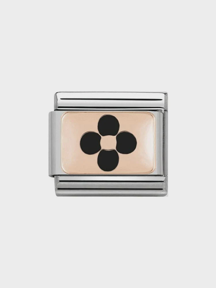 Composable Classic PLATES in stainless steel with 9k rose gold and enamel (12_Black Flower)