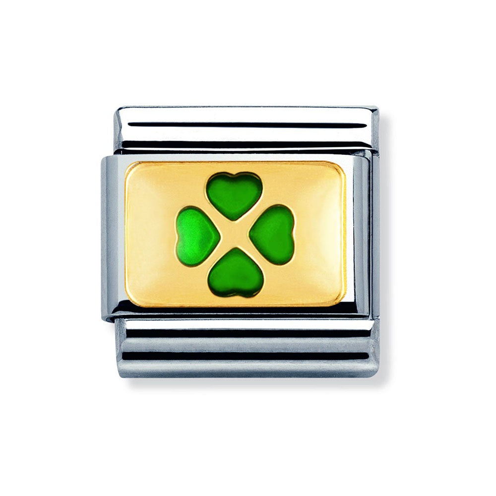 Composable Classic PLATES steel , enamel and bonded yellow gold (27_Green four-leaf-clover)