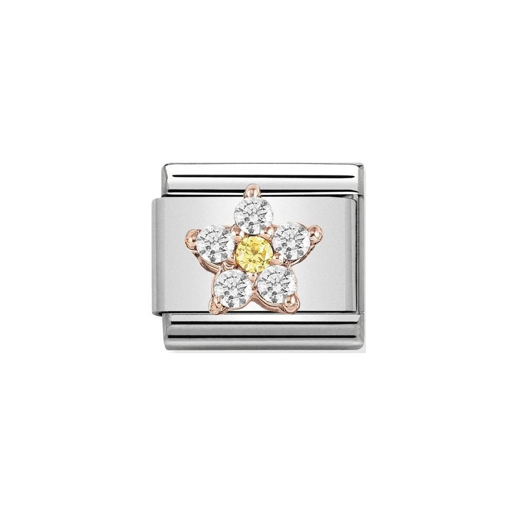 Composable Classic RICH steel, cubic zirconia and 9k rose gold (03_WHITE / YELLOW flower)