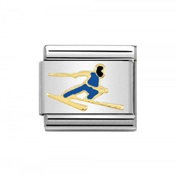 COMPOSABLE Classic SPORTS 1 in stainless steel with enamel and bonded yellow gold (16_Skier BLUE)