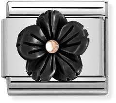 Composable Classic STONE SYMBOLS in stainless steel and 9k rose gold (01_Flower in ONYX)