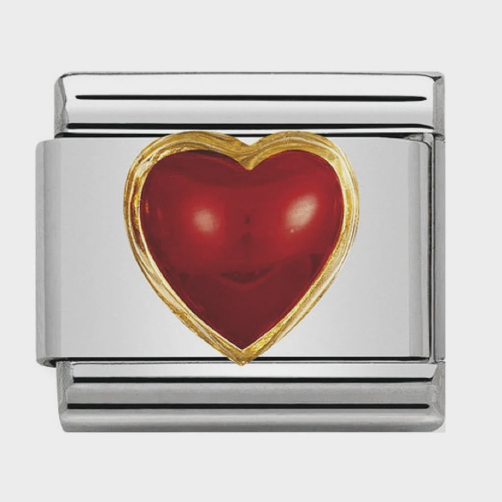 COMPOSABLE Classic STONES HEARTS in stainless steel with bonded yellow gold (11_RED CORAL)