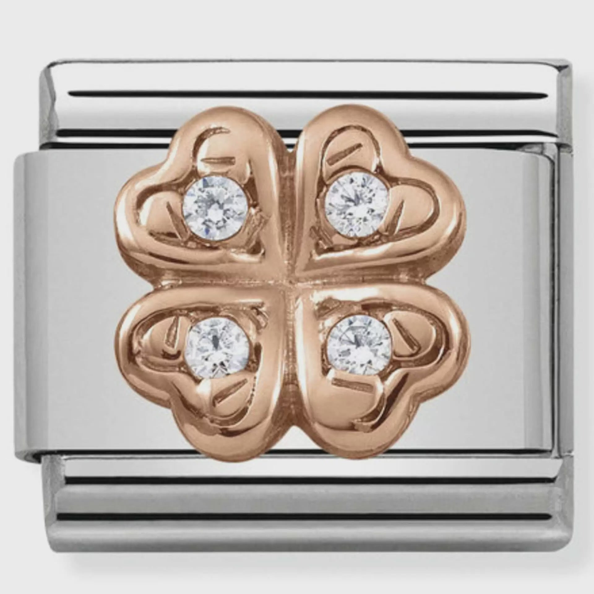 Composable Classic Symbols in stainless steel with 9k rose gold and CZ (04_Four-Leaf Clover)