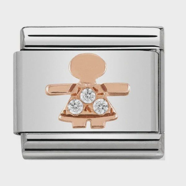 Composable Classic Symbols in stainless steel with 9k rose gold and CZ (07_Little girl)