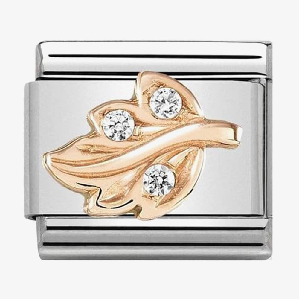 Composable Classic Symbols in stainless steel with 9k rose gold and CZ (15_WHITE leaf)