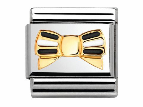 Composable Classic SYMBOLS steel, enamel and bonded yellow gold (46_Bow with stripes BLACK / WHITE)