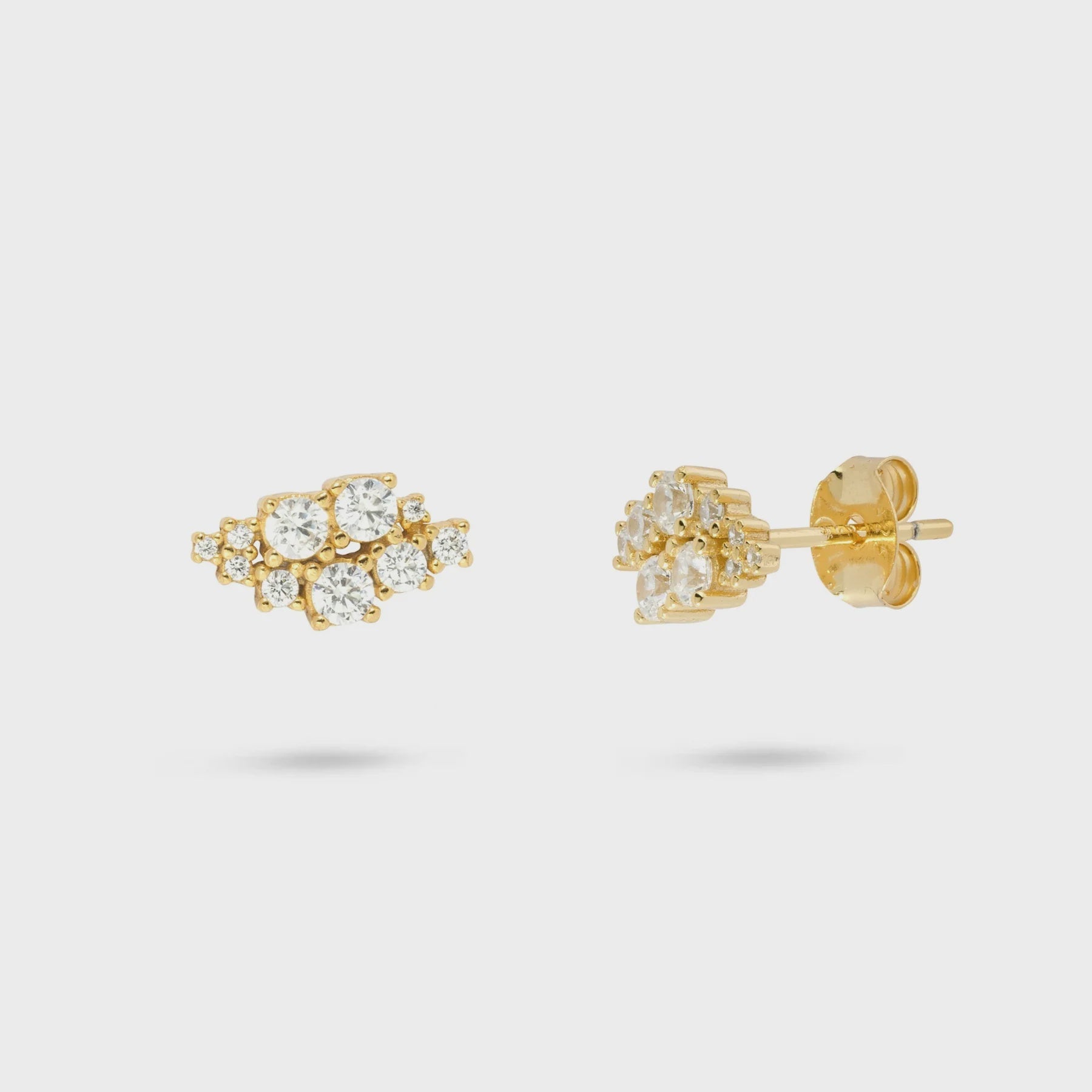 Delicate and feminine, the Crystal Cluster Stud Earrings are a contemporary classic that can be worn everyday or for special occasions. Featuring 10 varying sizes of super-sparkly cubic zirconia stones. Crafted from hypoallergenic 925 sterling silver, you can choose from finishes in rhodium (for a tarnish-resistant silver finish) or 18ct plated finishes.