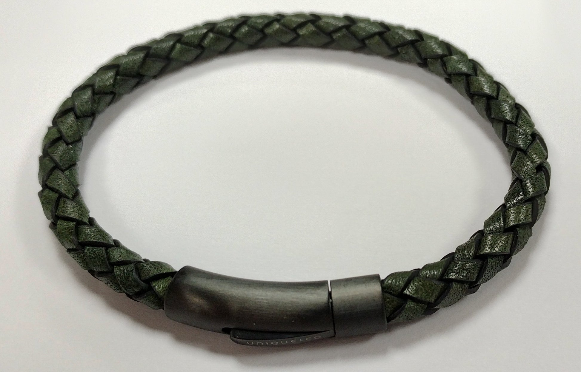 Dark Green Leather Bracelet With Matt Black Clasp 21cm