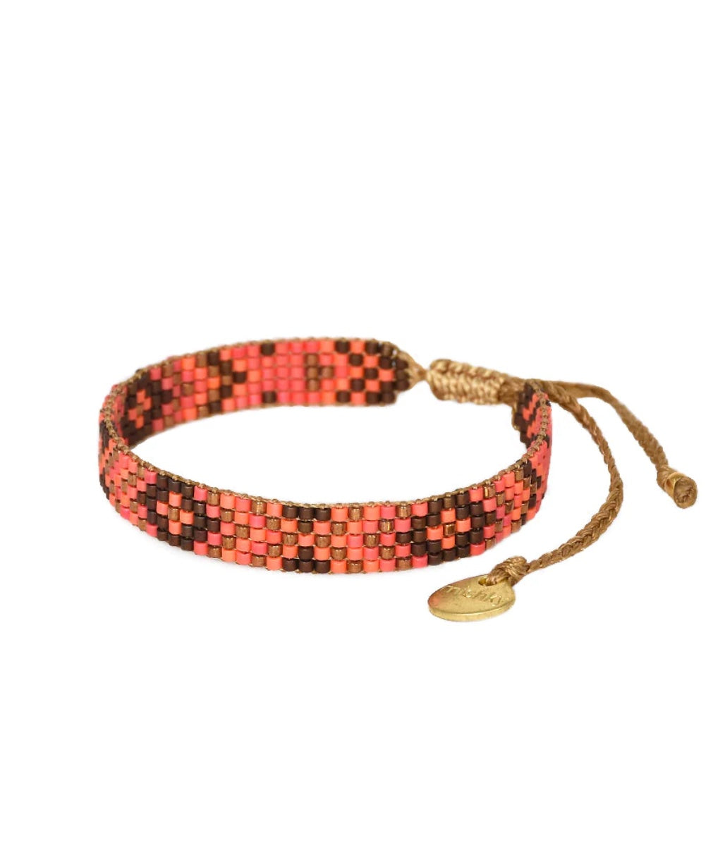 Japanese beads, polyester thread, terlenka thread, bronze gold plated Mishky logo