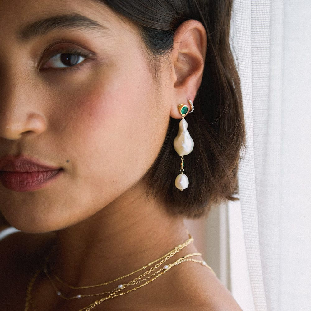 Double Baroque Pearl Drop Earrings 18ct Gold Plate