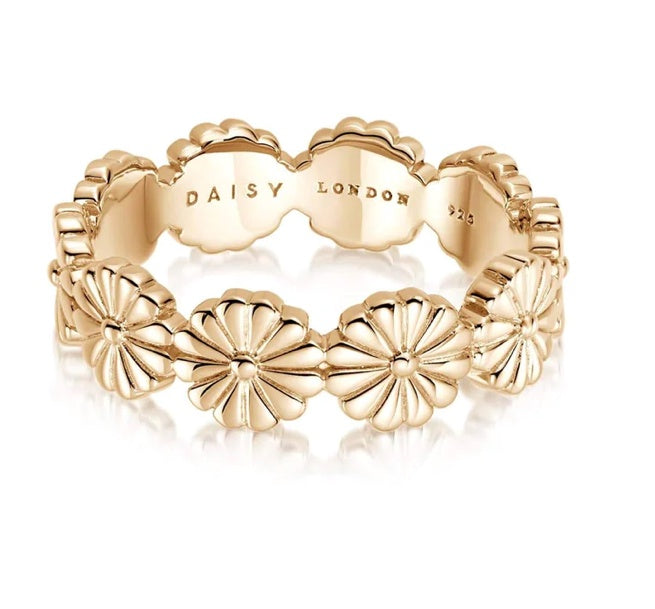 The Daisy Crown Band Ring is the flower-crowning glory you didn't know you needed. Hand-crafted in 100% recycled sterling silver, with 18ct gold plating, featuring an engraved daisy symbol, repeated to create a gorgeous golden daisy chain.