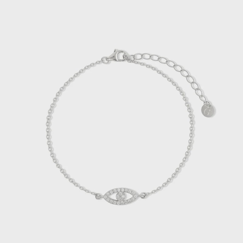 Designed to repel negative feelings, the delicate and eye-catching Lucky Evil Eye Bracelet is crafted from 925 sterling silver, and plated in either rhodium or 18ct gold, featuring pavé-set cubic zirconia stones set to form the lucky evil eye.
