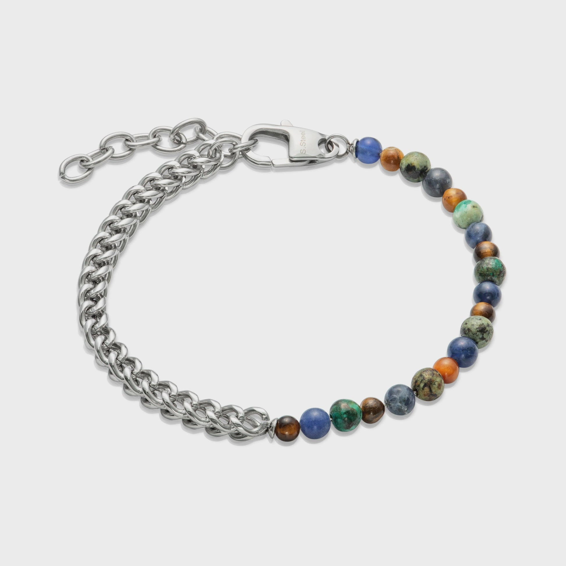 Steel Chain with Blue and Brown Tiger Eye and Amazonite Beads