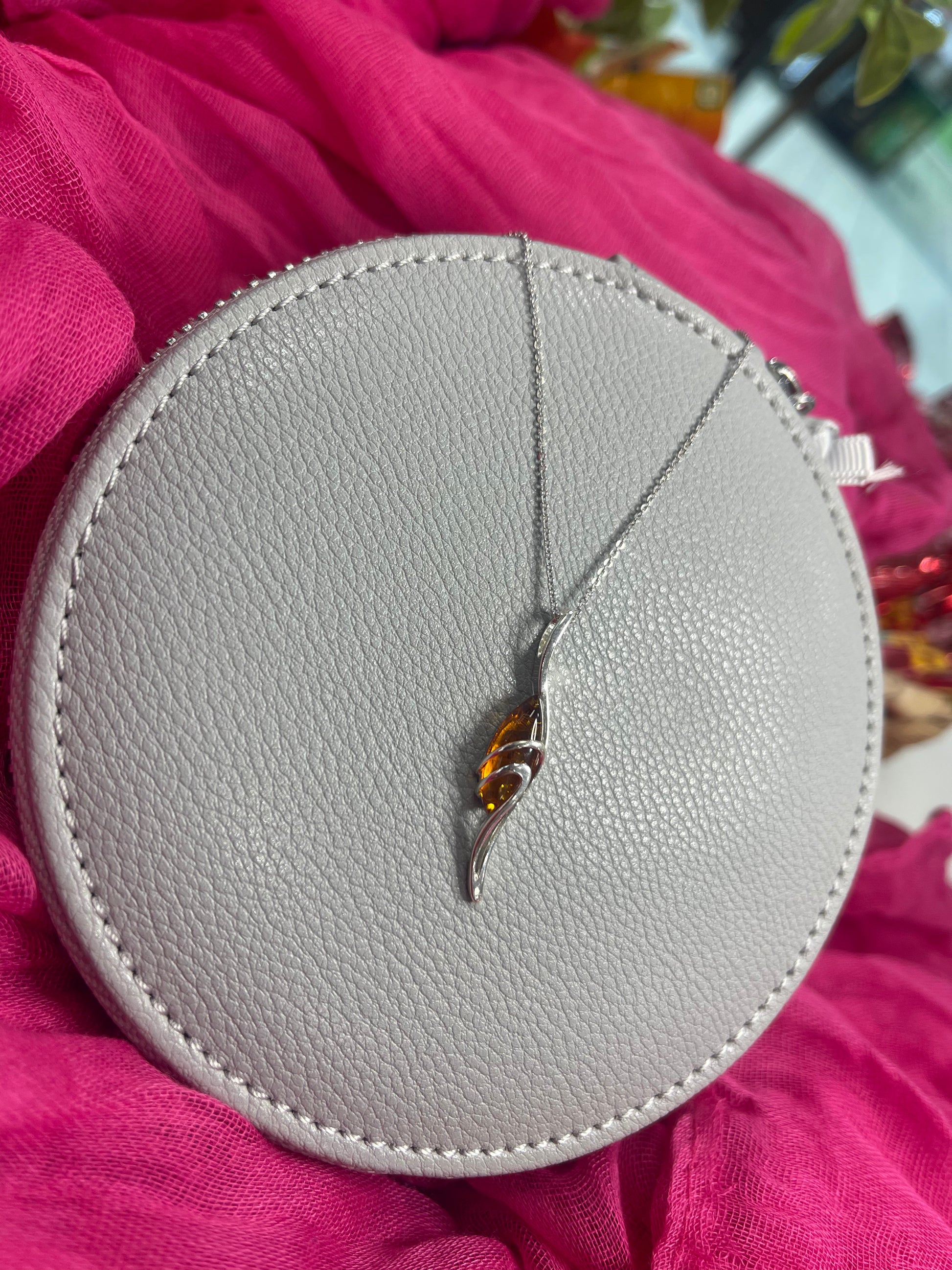 Marquise Amber Swirl Necklace on 18 Inch chain