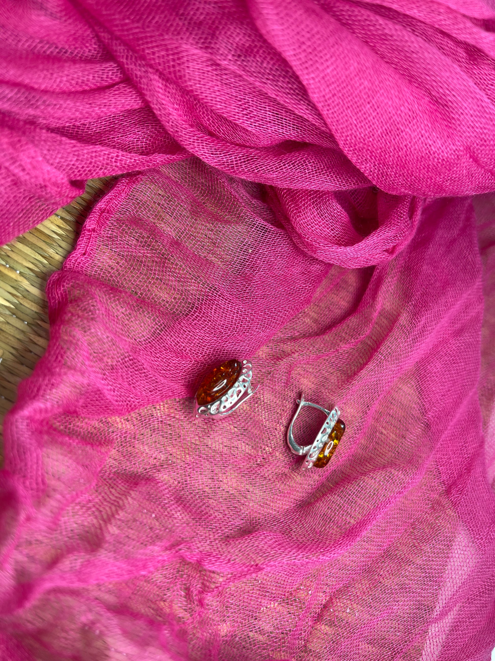 Marquise shaped Amber hoop earrings