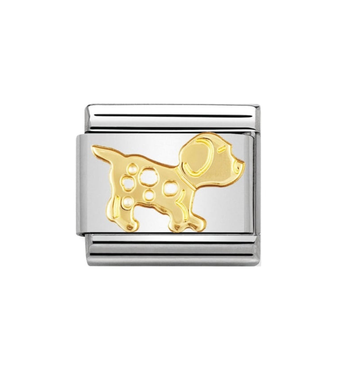 Show your appreciation for man's best friend with the Nomination Classic 18ct Gold Dog Charm. Crafted from 18 carat gold, this charming charm features a detailed dog design accompanied by a sweet sentiment of 'Loyal until the End'. Paying tribute to our beloved canine companions, the Nomination Classic 18ct Gold Dog Charm is perfect for those who adore their pet pooch.