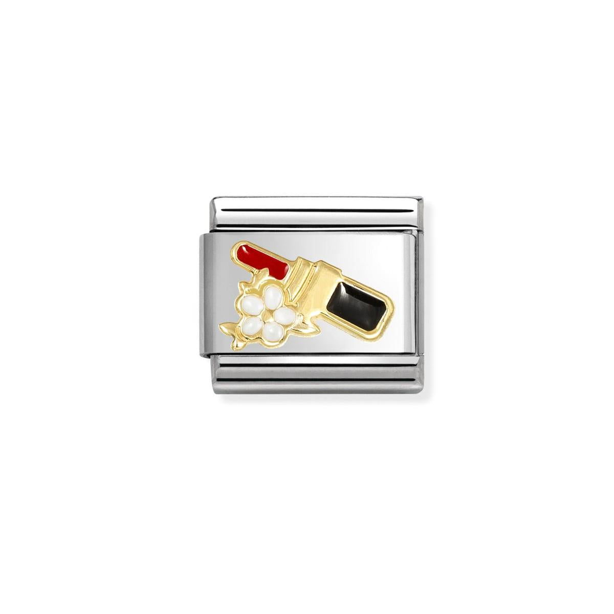 Nomination Classic Gold Enamel Lipstick with Flowers Charm